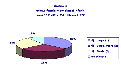 RACCOLTA SISTEMATICA DELLE MODALITA' DI MANIFESTAZIONE DEL MALESSERE PSICHICO COSI' COME RIFERITO DALLE DONNE UTENTI DEL SERVIZIO (ANNI 1981-85)